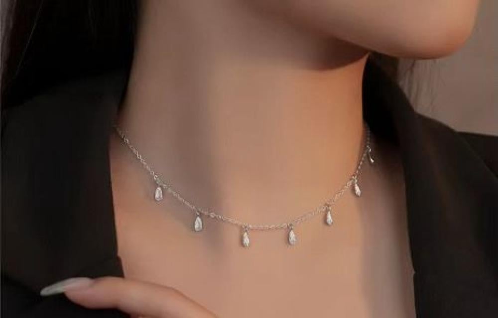 سلسال فضه 925 استرليني على شكل قطرة ماء من الزركون