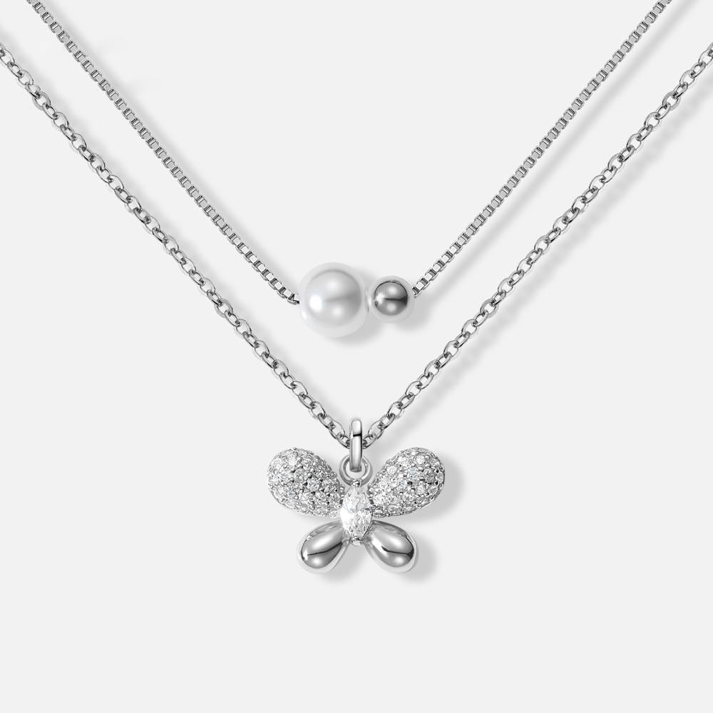 سلسال فراشة فاخر من اللؤلؤ بطبقتين مطلية بالذهب عيار 18 قيراطًا